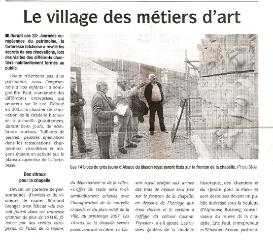 JournalArticle sur les Journées du Patrimoine à la Citadelle